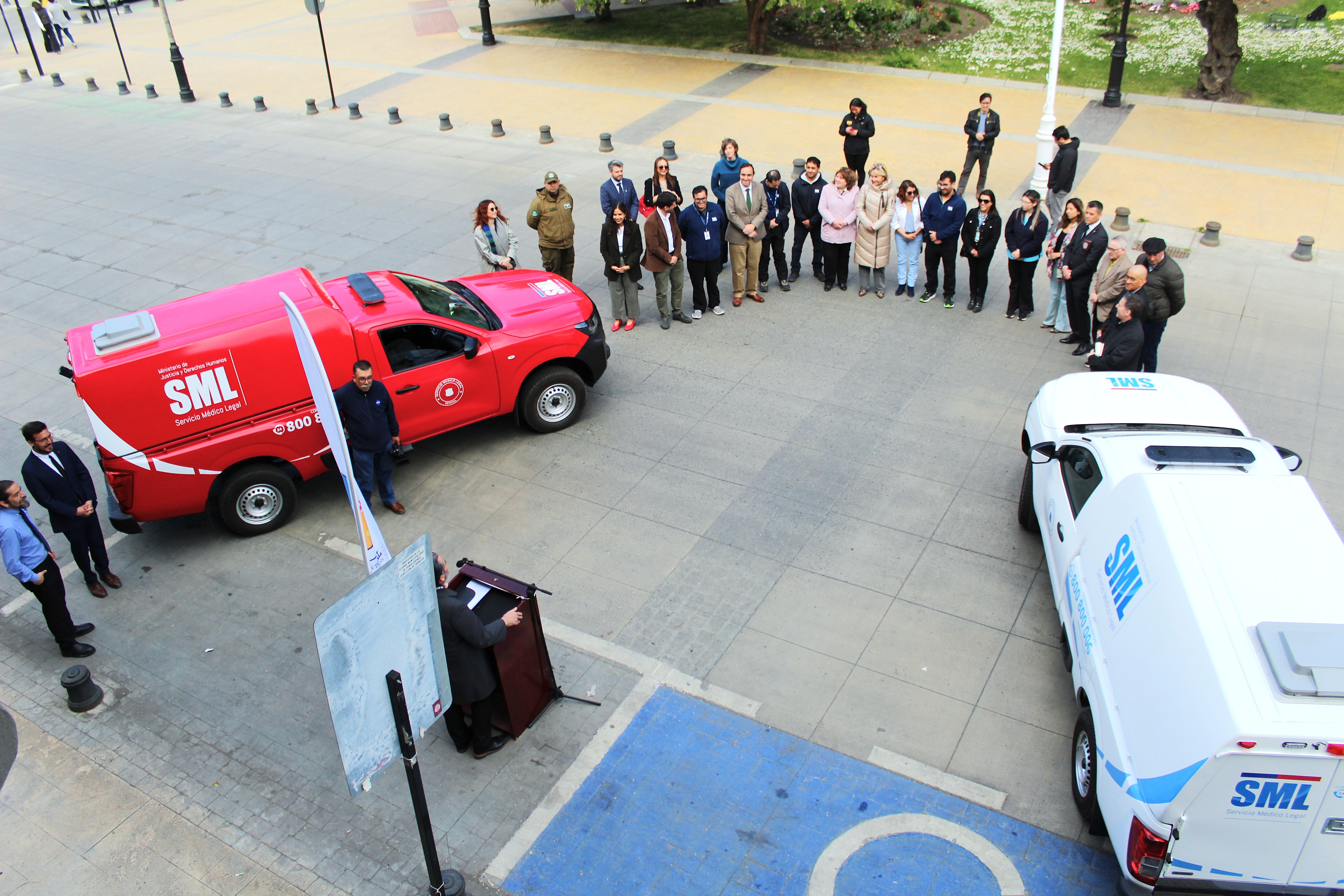 Frente a la Delegación Presidencial Regional se realizó ayer la entrega de dos nuevos vehículos con los cuales el Servicio Médico Legal (SML) renovó su flota en Magallanes, correspondiente al proyecto denominado "Reposición de Camionetas de Levantamiento y Traslado de Fallecidos para el Servicio Médico Legal de Punta Arenas", iniciativa que contó con financiamiento del Gobierno Regional.